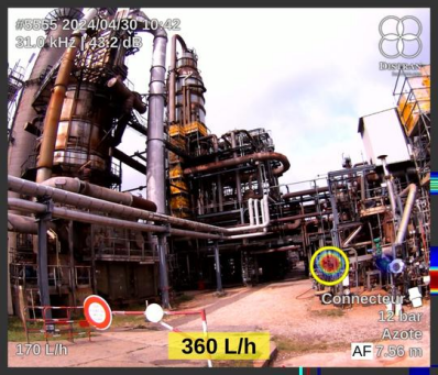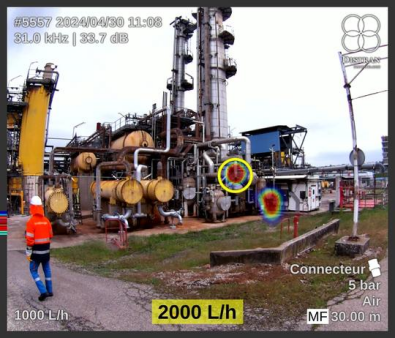 道达尔能源始终坚持最高安全标准,尤其在塞韦索这样位于城郊的高风险地区,对有害气体泄漏秉持“零容忍”政策。过去十年,基地已投入超1.5亿欧元用于环保改善,而每一次计划性停产检修,都是对设备安全性与密封性的终极考验。 检修挑战:时间、安全与“零泄漏”的平衡 计划检修通常持续五周,涉及上百名专业人员,需对数千个法兰、阀门与传感器进行维护。核心任务不仅是修复,更要在重启前确保整个系统,包括上千个未被直接操作的连接点绝对密封。传统的肥皂水检漏法在此面临巨大挑战:人员需近距离逐个检查,对高空或复杂结构处的法兰还需搭建脚手架,过程耗时耗力,且无法定量评估泄漏程度与气体性质,因此不管是停机检修的时间成本,还是检修人员的安全问题,对道达尔能源公司都充满了挑战。